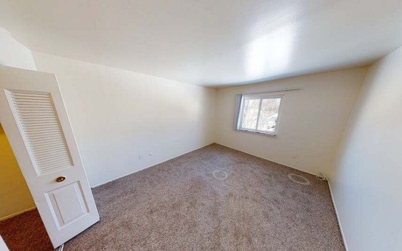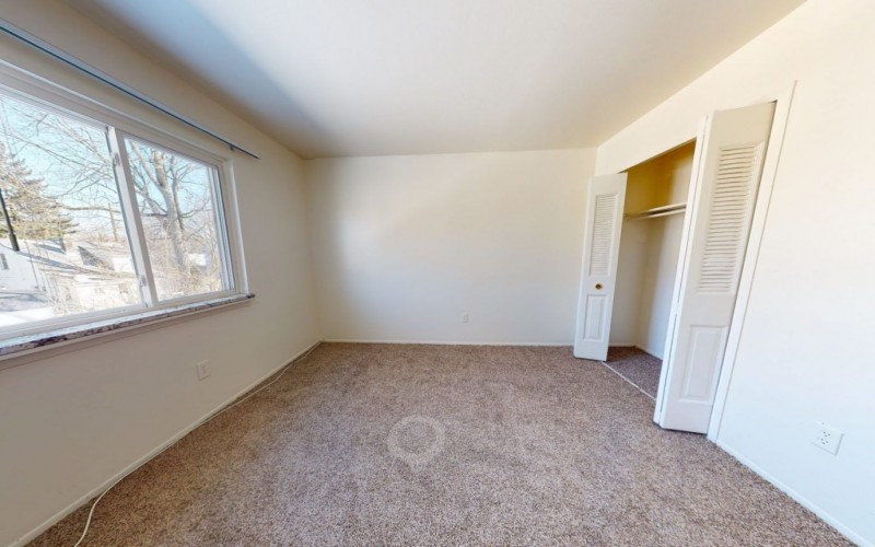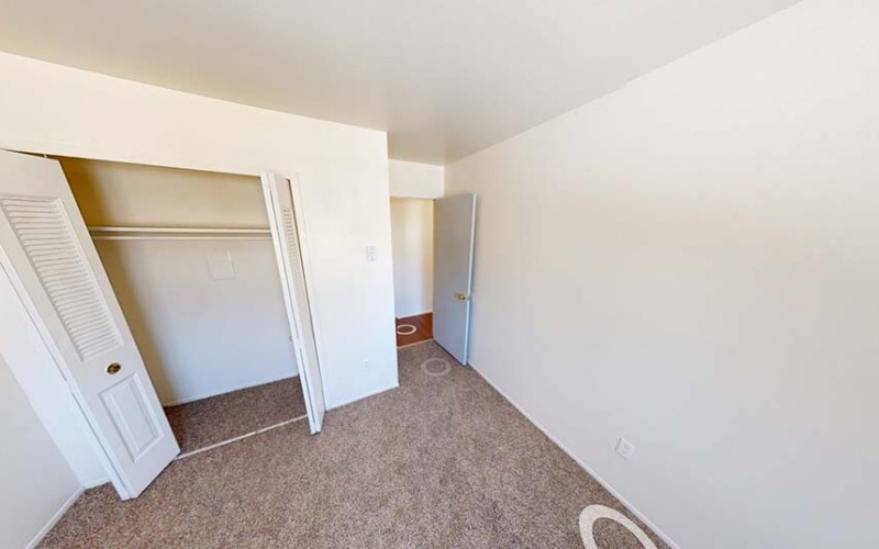 What you will not find in our 1-bedroom apartments is this second bedroom, which features a generously sized closet with hanging space and a large window area that is ideal for a small at-home office area or a remote-learning station.